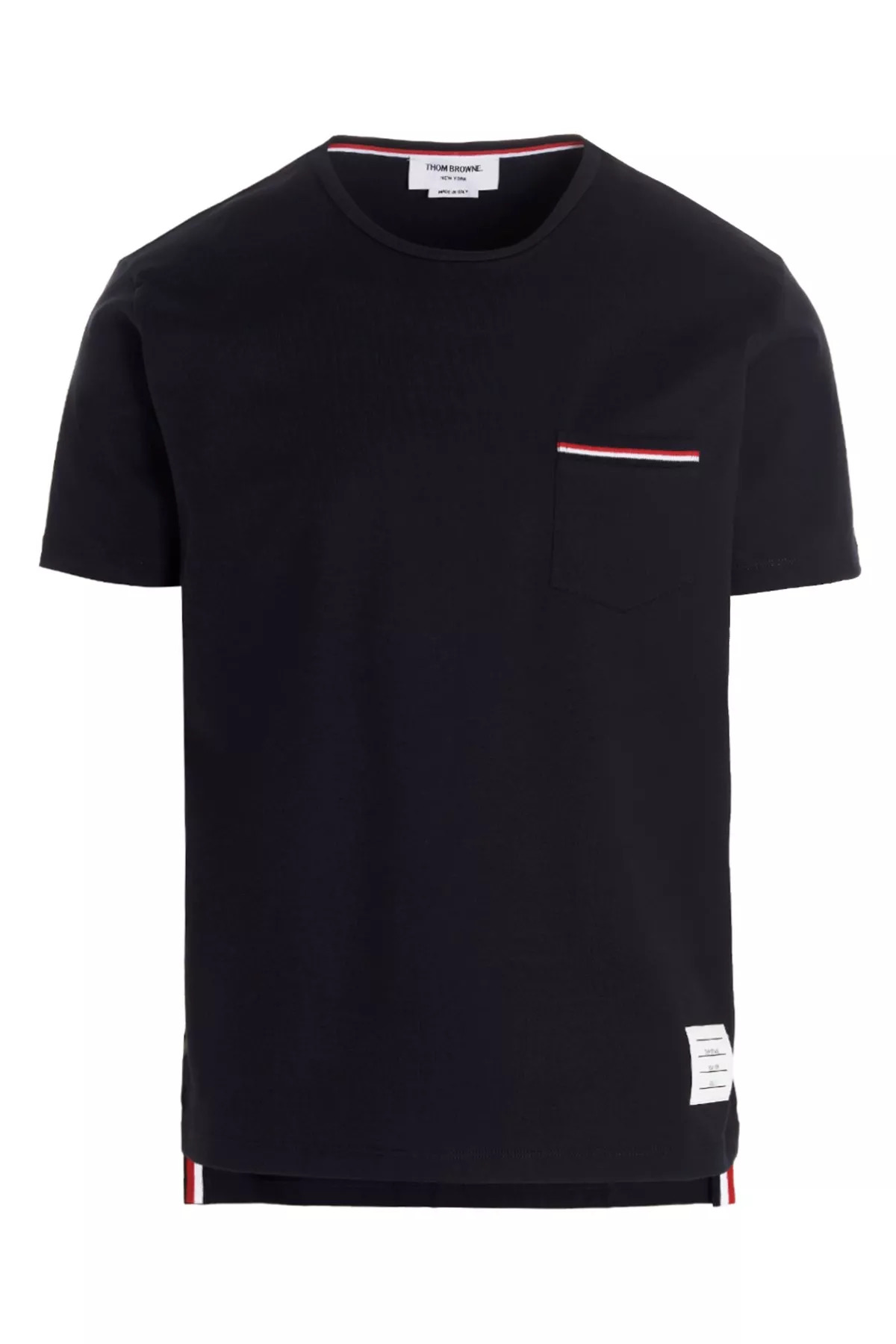 cod. MJS010A01454415 Thom Browne jersey crew neck t-shirt with short sleeves, chest pocket and contrast band details. Color: Blue Fabric: 100% cotton Made in: Italy Size & Fit: True to size
