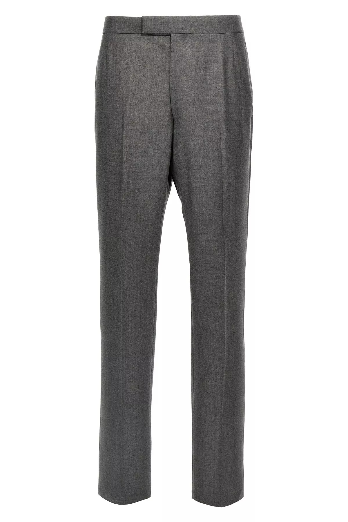cod. MTC001A00626035 Wool twill pants, adjustable back strap, pockets, button and hook closure. Color: Gray Size & Fit: true to size fit Composition: 100% wool Made in: Italy