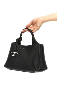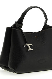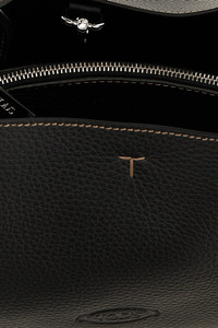 cod. XBWAPAEL000QRIB999 Micro' hammered leather handbag with removable shoulder strap and metal T Timeless detail. Color: Black Size & Fit: W 25 x H 17 x D 14.5 cm Made in: Italy