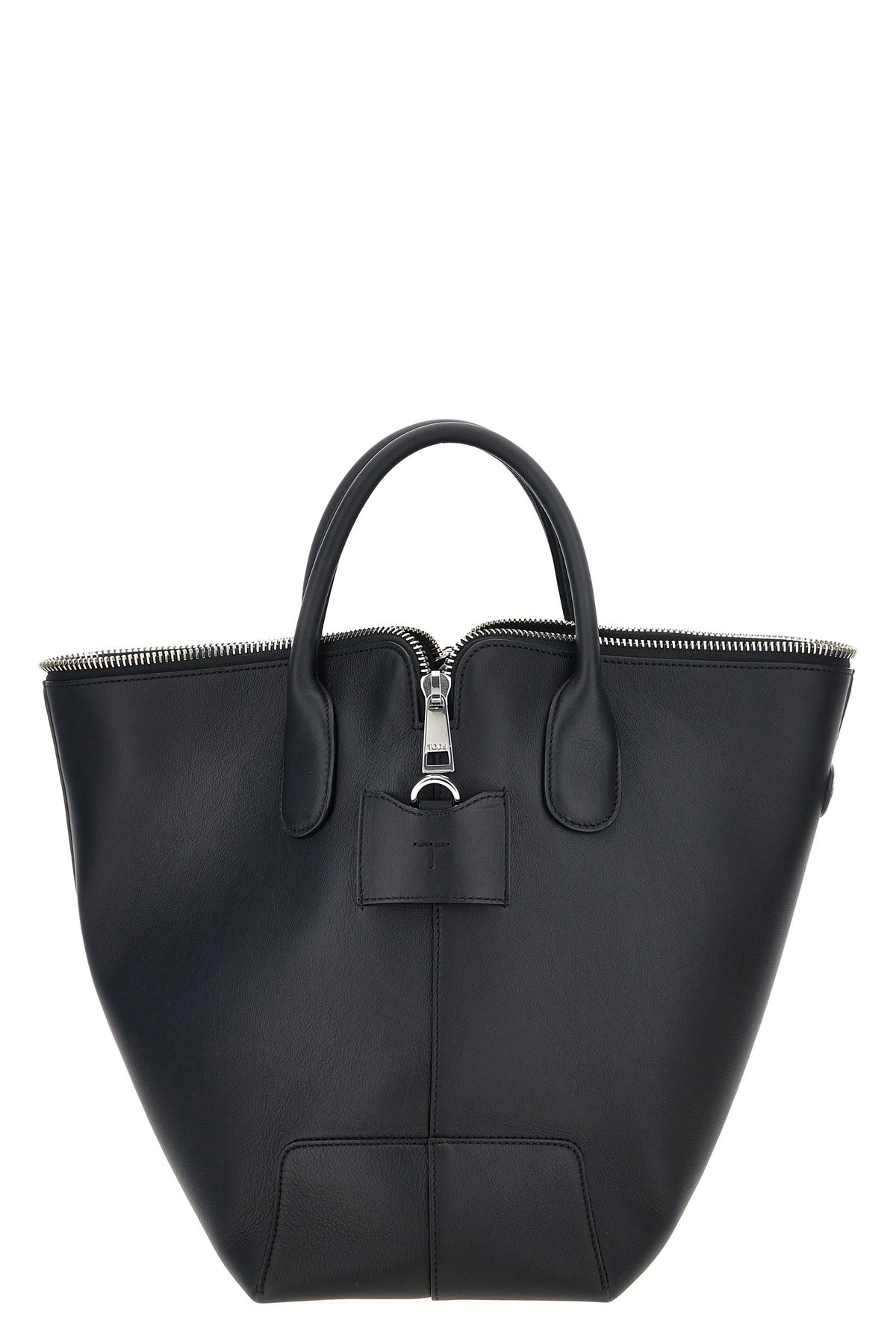 cod. XBWDBNS0300YATB999 'Swing' medium leather handbag, zip closure, double handle, adjustable and removable shoulder strap. Color: Black Size & Fit: W 42 x H 27 x D 27 cm Composition: 100% calfskin leather (Bos Taurus) Made in: Italy