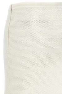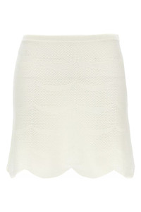 cod. GCK215YAX844AW002 Openwork mini skirt in cotton and silk blend crocheted, elastic waistband. Color: White Size & Fit: true to size fit Composition: 57% cotton, 43% silk Made in: Italy
