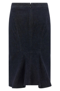 cod. GCD089DEX236HB470 Midi skirt in stretch cotton denim with zip closure and flounce on the back hem, unlined. Color: Blue Size & Fit: true to size fit Composition: 98% cotton, 2% elastane Made in: Italy