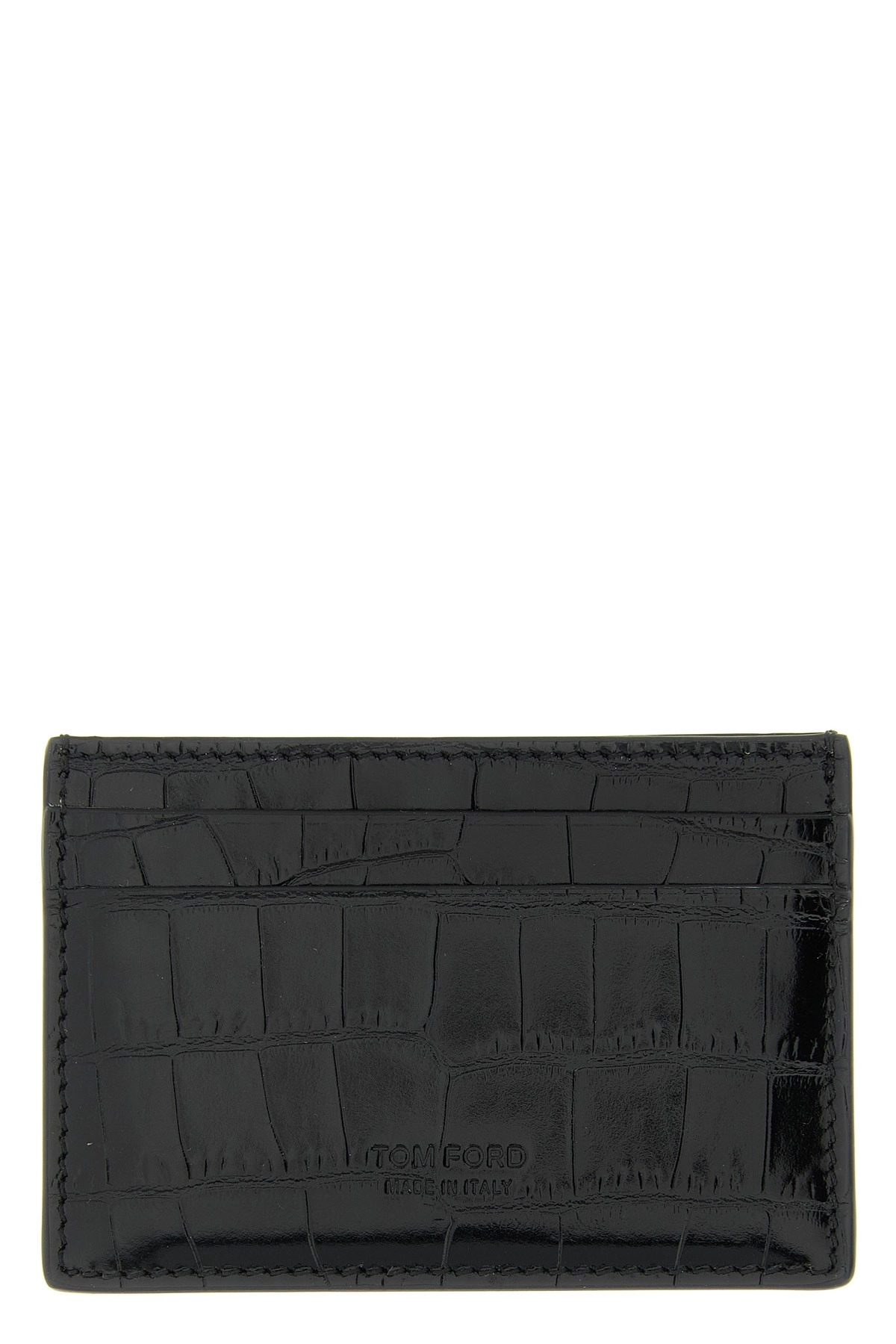 cod. Y0413LCL439S1N001 'Exotic Line' card holder in shiny crocodile print leather with embossed logo on the front. Color: Black Size & Fit: W 10 x H 7 cm Composition: 100% calfskin leather (Bos Taurus) Made in: Italy