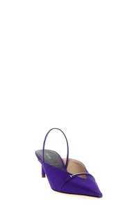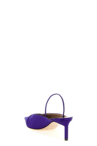 cod. W3842TSA001PVBS 'Julianne' satin slingbacks, pointed model with metal T-details and front cut-out, elastic strap, stiletto heel, leather sole. Color: Purple Size & Fit: EU WOMAN - Heels: 5.5 cm Composition: 66% viscose 29% silk 5% bra Made in: Italy