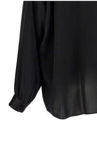 cod. CA3333FAX1507NAA Washed silk georgette blouse with tonal satin details, lavalliere neck with V-neck, long sleeves with cuffs and dropped shoulders, side slits. Color: Black Size & Fit: Comfort fit Composition: 100% silk Made in: Italy