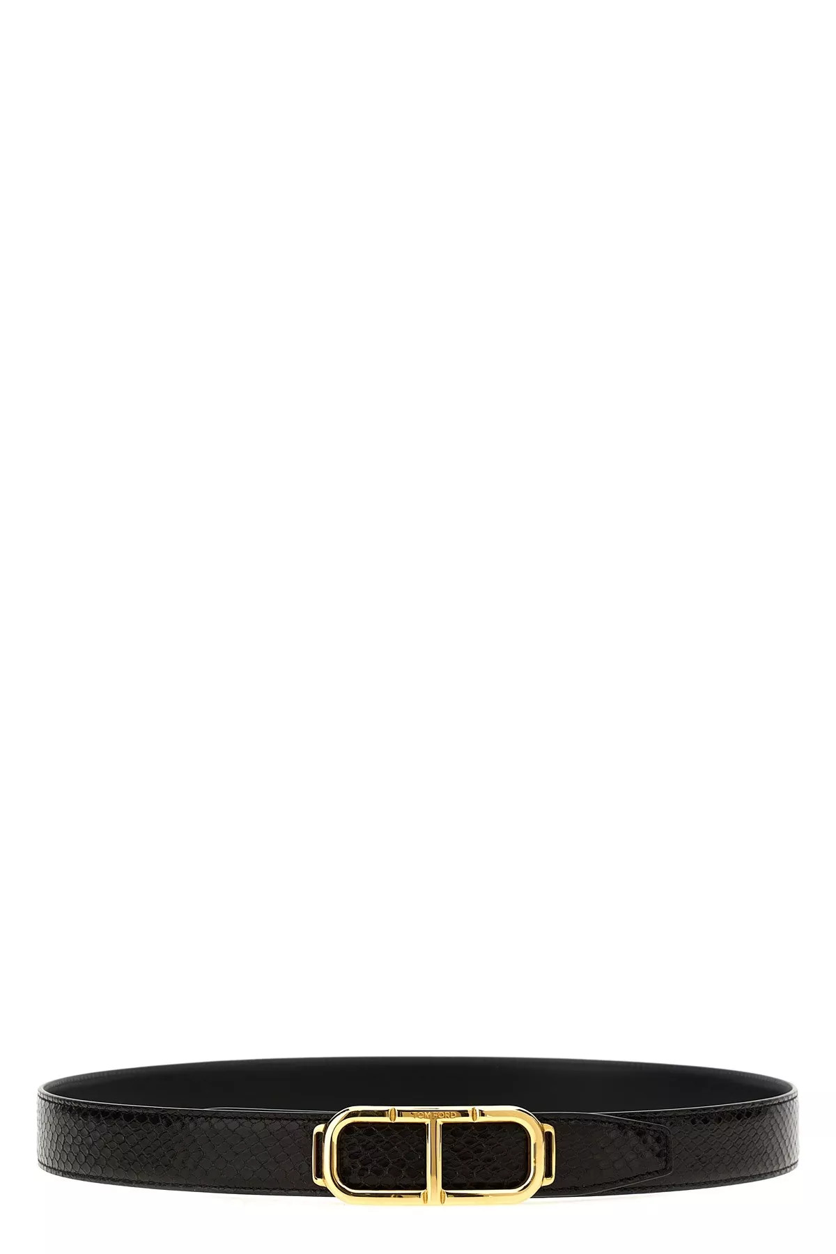 cod. TB297LCL471X1B011 Reversible leather belt with python print side in glossy patent leather and metal logo buckle. Color: Multicolor Size & Fit: H 3 cm Composition: 100% leather Made in: Italy
