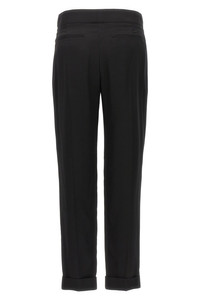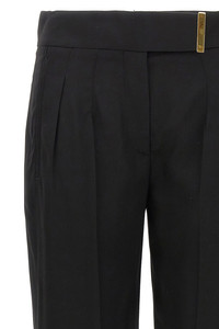 cod. PAW497FAX1016LB999 Viscose trousers, zip and hook closure with gold metal bar detail with engraved logo, pockets, pin tucks and central crease. Color: Black Size & Fit: True to size fit Composition: 100% viscose
