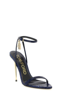cod. W2272LCL516PUDI Python print leather sandals, adjustable ankle strap with metal padlock charm, metal stiletto heel, leather sole. Color: Blue Size & Fit: EU WOMAN - Heel: 11 cm Composition: 90% calfskin leather 10% brass Made in: Italy