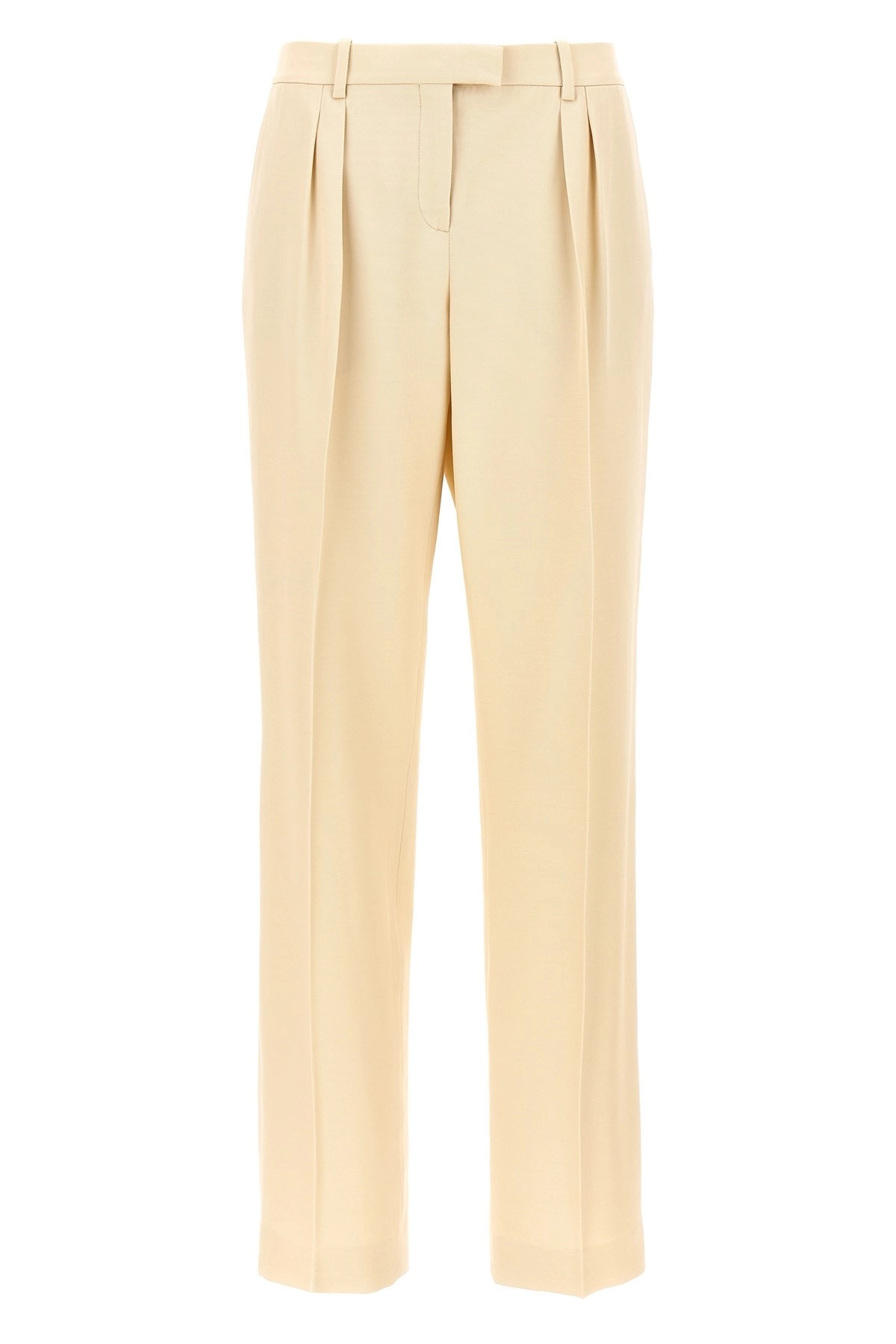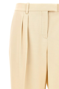 cod. PAW576FAX1216AW040 Silk and wool pants with pin tucks and ironed pleat, hook and button zip closure, pockets. Color: Beige Size & Fit: true to size fit Composition: 51% silk, 49% wool Made in: Italy