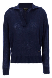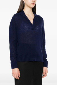 cod. MAK1391YAX921HB600 Cashmere and silk blend polo shirt with collar and V-neck, metal tag with front engraved logo, and long sleeves. Color: Blue Size & Fit: true to size fit Composition: 74% WS, 26% se Made in: Italy
