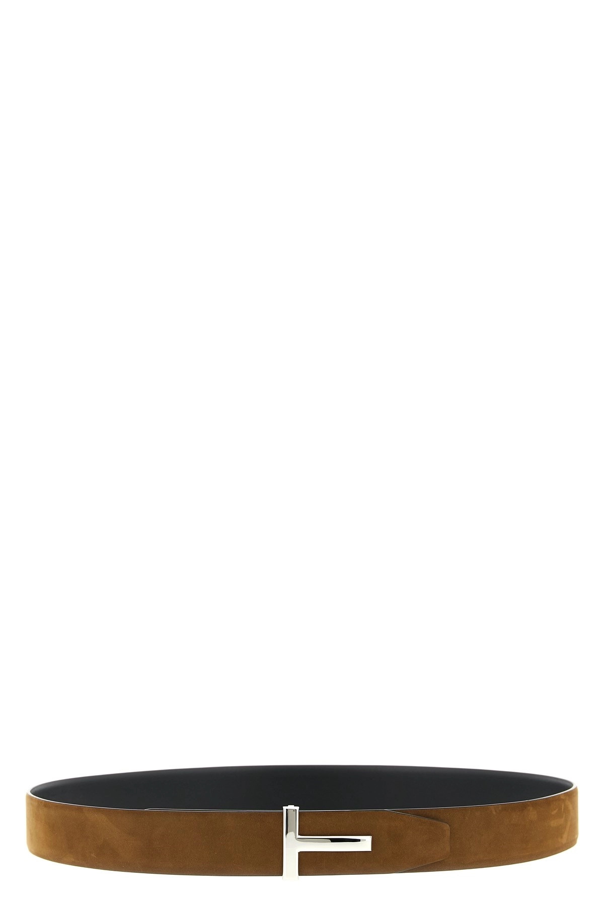 cod. TB178LCL504S1B014 Adjustable reversible belt in suede and smooth leather with shiny metal logo buckle. Color: Brown Size & Fit: H 4 cm Composition: 100% calfskin leather (Bos Taurus) Made in: Italy