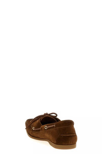 cod. J1467LCL046P3BA07 'Robin' suede boat shoe with laces and rubber sole. Color: Brown Size & Fit: US MEN Composition: 95% calfskin leather 5% brass Made in: Italy