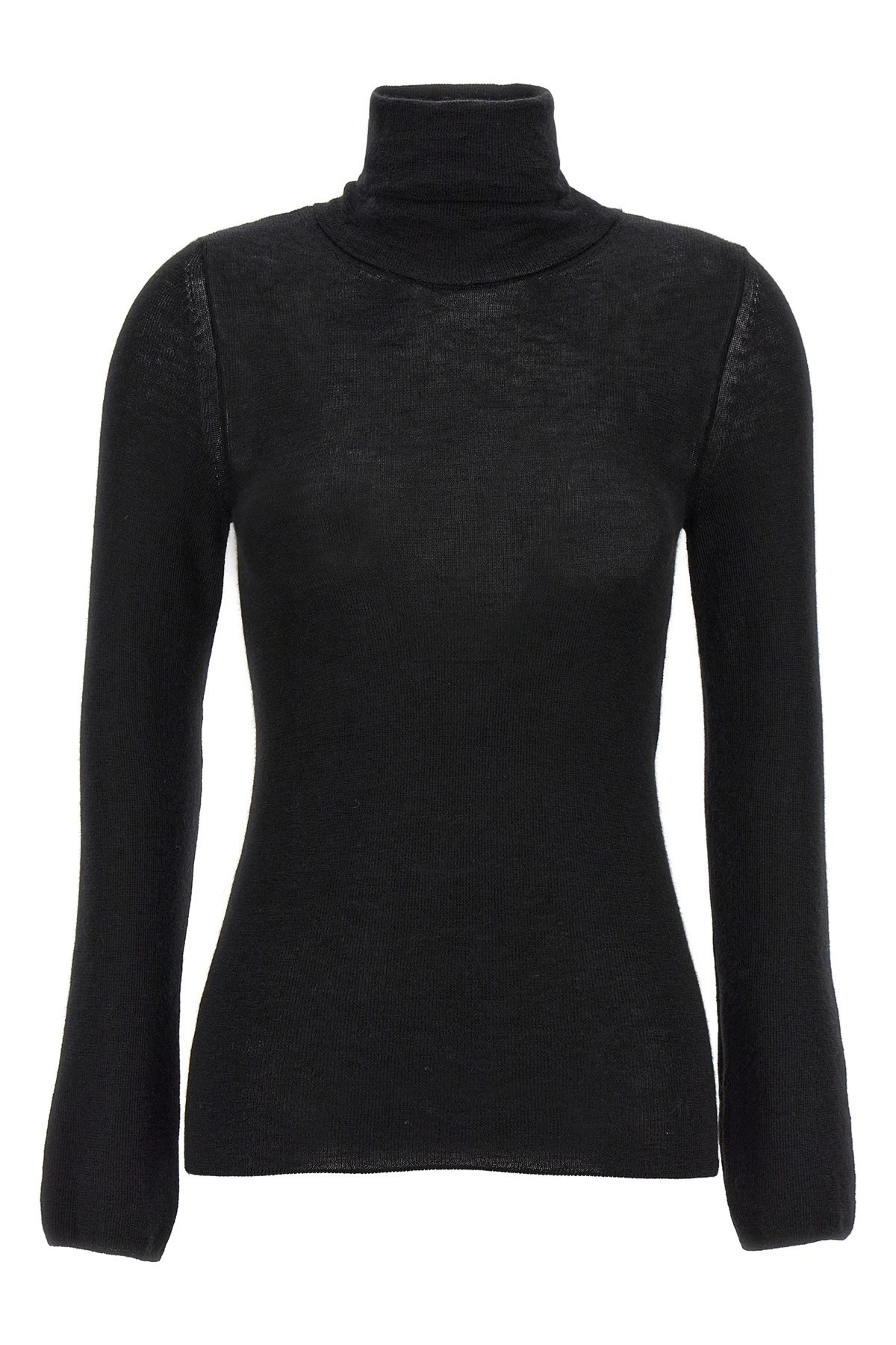 cod. MAK1332YAX752LB999 Cashmere and silk turtleneck sweater, high neck, long sleeves. Color: Black Size & Fit: true to size fit Composition: 70% cachemire 30% silk