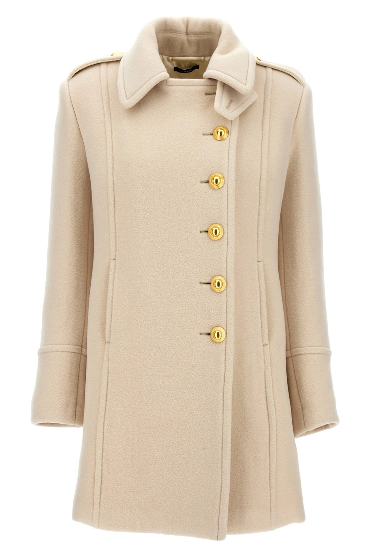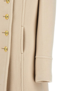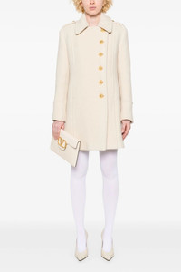 cod. CS1260FAX1296JB106 Single-breasted wool and cashmere coat with button closure, pockets, long sleeves, detail on shoulder straps, martingale and back split. Color: White Size & Fit: true to size fit Composition: 90% wool, 10% cashmere Made in: Italy