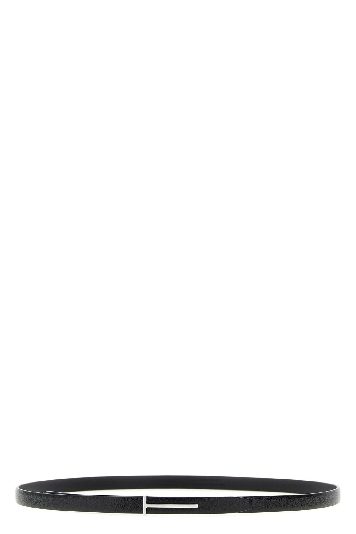 cod. TB320LGO033S1N001 Thin full-grain leather belt, metal 'T' logo buckle. Color: Black Size & Fit: H 1.5 cm Composition: 100% goat leather Made in: Italy