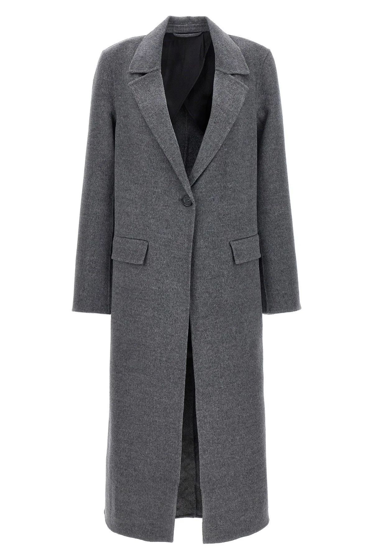 cod. 251WRO4725FB0006020 'Classic double' unlined wool coat with button closure, front pockets, back split, long sleeves with buttons. Color: Gray Size & Fit: True to size fit French sizing Composition: 100% wool Made in: China