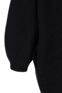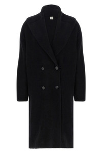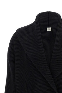 cod. 261WRT0698YA0239001 Long, ribbed cardigan in coarse wool, double-breasted model with shawl collar and front button closure, pockets, and long wide sleeves. Color: Black Size & Fit: Comfort fit Composition: 94% wool 6% polyamide Made in: China