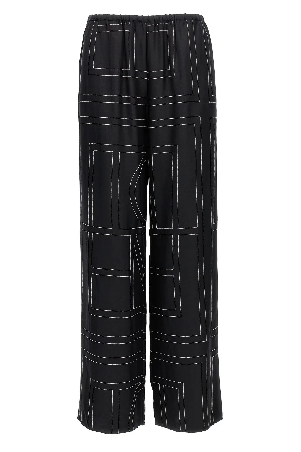 cod. 213255707925 'Monogram' pajama-style silk pants with embroidery detail, elastic waistband, wide leg, pockets. Color: White/Black Size & Fit: True to size fit French sizing Composition: 100% silk Made in: China PROMO CODE NOT APPLICABLE