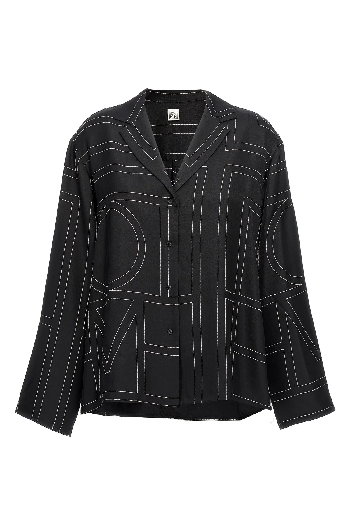 cod. 213755707925 'Monogram' silk shirt, pajama style, with embroidered stitching and front button closure. Color: White/Black Size & Fit: True to size fit French sizing Composition: 100% silk Made in: China