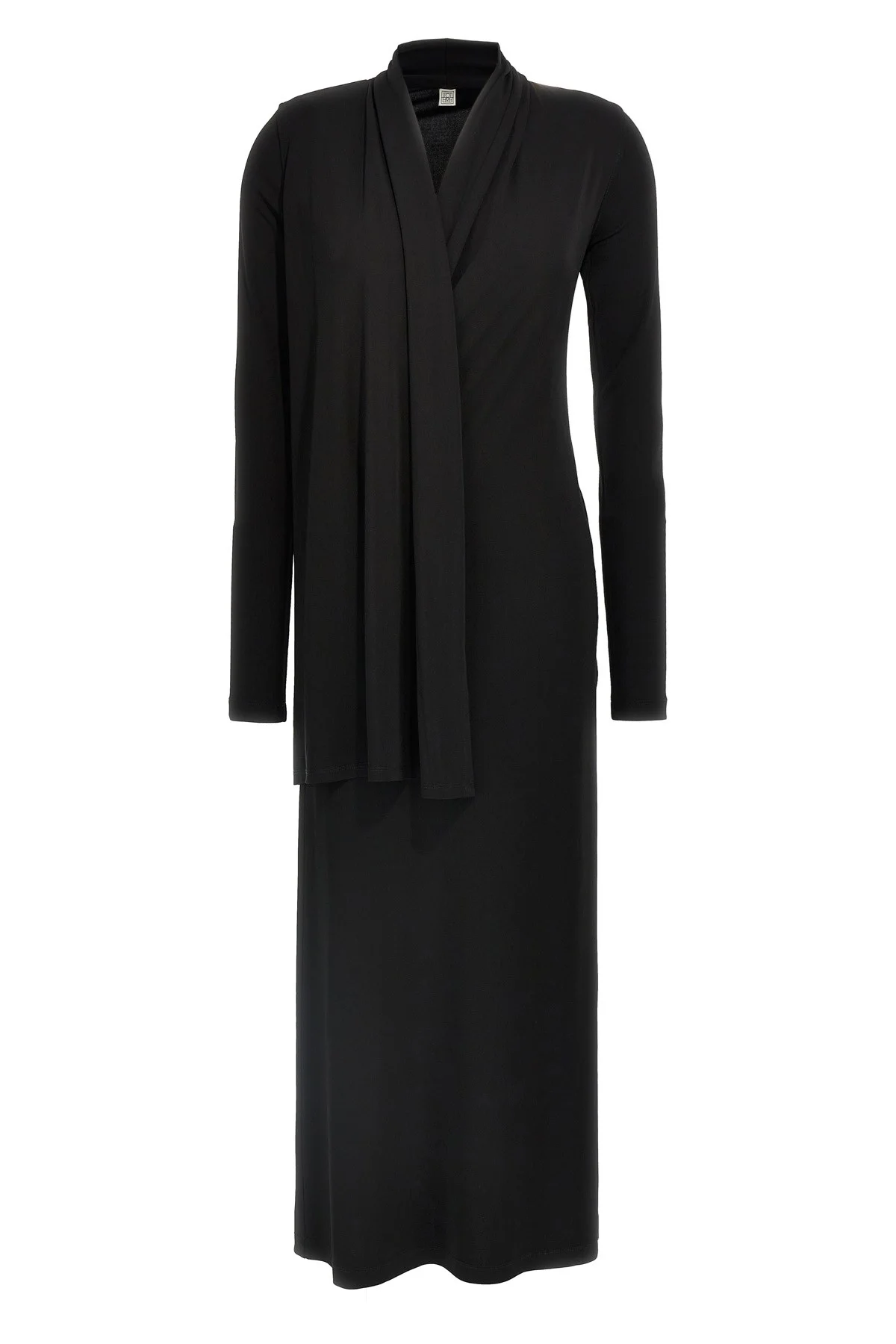 cod. 252WRD0172FB0162001 Long 'Overlapped Jersey' dress in stretch fluid viscose jersey, wallet model with V-neck, built-in scarf to be draped as desired. Color: Black Size & Fit: true to size fit Composition: 96% viscose, 4% elastane Made in: China