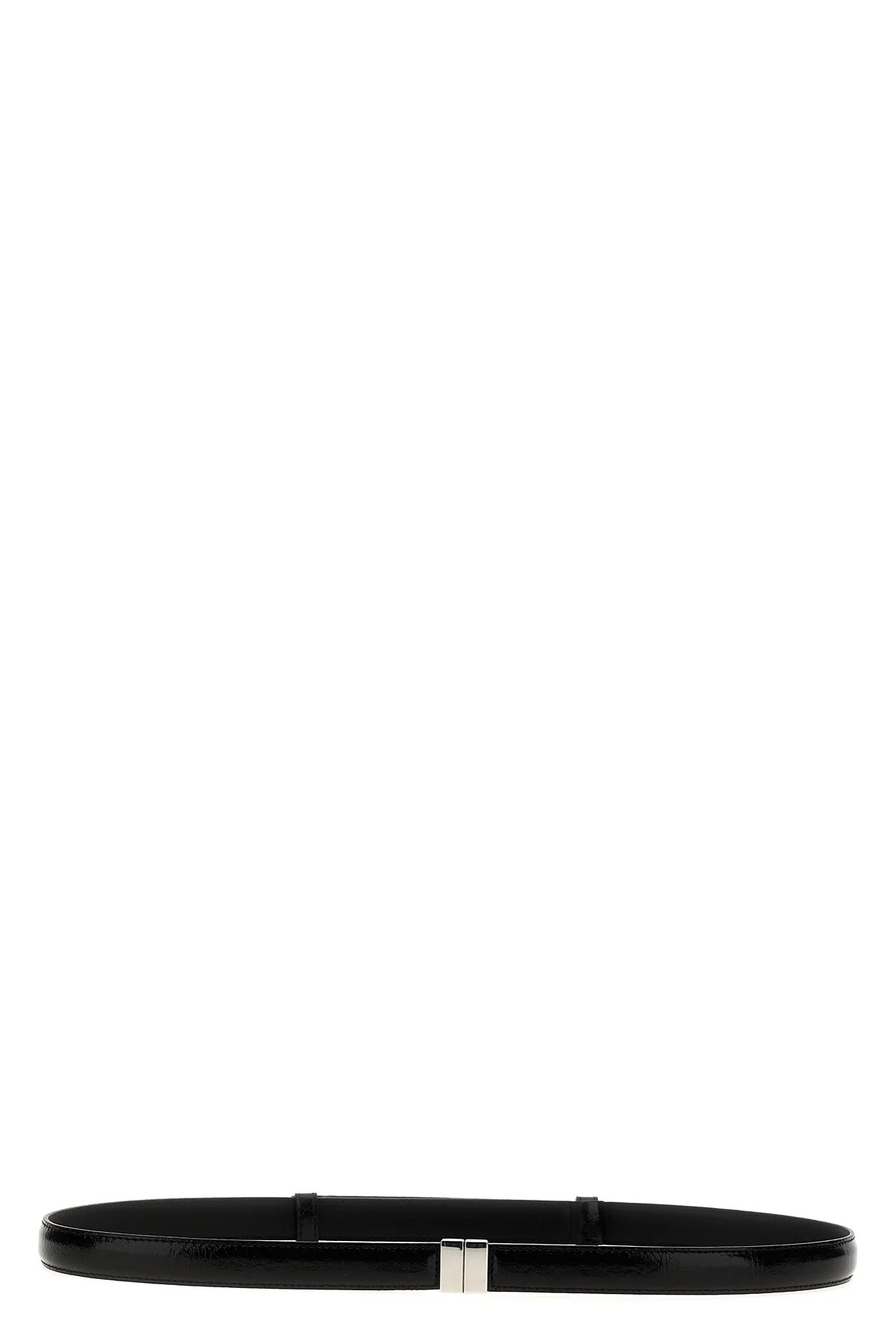 cod. 251WAM0033LE0020001 Shiny patent leather belt with silver metal sliding closure. Color: Black Size & Fit: H 1.5 cm Composition: 100% calfskin leather (Bos Taurus) Made in: Italy