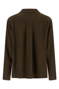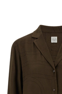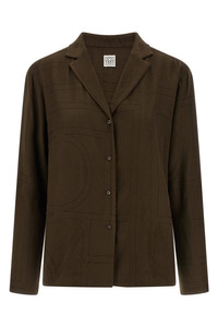 cod. 251WRT976FB0080034 Toteme' embroidered modal flannel shirt with contrast black thread monogram pattern, pajama style with V-neck, front button closure, long sleeves with dropped shoulders. This product is made with craft techniques, possible variations between one item and another are to be considered characteristics of the product. Color: Brown Size & Fit: oversized fit - FRENCH size Composition: 100% Lenzing TENCEL™ modal Made in: China