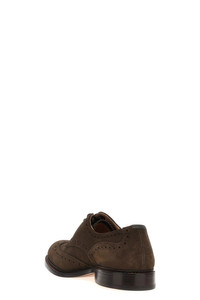 cod. BOURTONFLINTREPELLO 'Flint Repello' suede lace up shoes with dovetail embroidery, lace closure, leather sole. Color: Brown Size & Fit: UK MEN Composition: 100% calfskin leather (Bos Taurus) Made in: United Kingdom