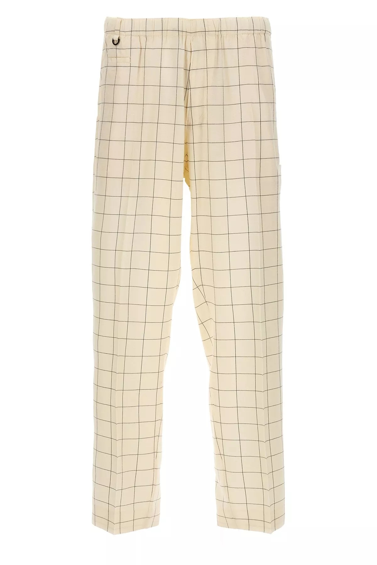 cod. US1C4501IVORYCK Rayon blend pants with all-over check pattern, an elastic and drawstring at the waist, patch appliqué, pockets. Color: White/Black Material: 48% rayon 41% acetate 11% silk Made in: China Size &Fit: True to size fit Japan size