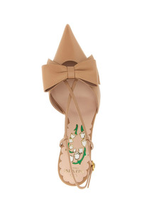 cod. W2S0MX5DDTGF9 'Bowow' kidskin slingbacks with front bow detail, pointed toe, adjustable strap, antiqued metallic VLogo Signature heel, leather sole. Color: Pink Size & Fit: EU WOMAN - Heels: 8,5 cm Composition: 100% leather Made in: Italy