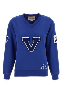 cod. B3MF24V9KYAF9 Brushed cotton sweatshirt, collage pattern, V-neck, patch embroidery and 'Chat de la Maison' prints, long cuffed sleeves. 'Chat de la Maison' Color: Blue Size & Fit: true to size fit Composition: 100% cotton Made in: Italy