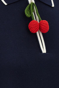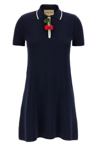 cod. B3KD13X9EQ671 Cotton knit polo mini dress with contrast details and a crochet 'Cherryfic' zipper puller, A-line silhouette, and short sleeves. Color: Blue Size & Fit: true to size fit Composition: 100% cotton Made in: Italy