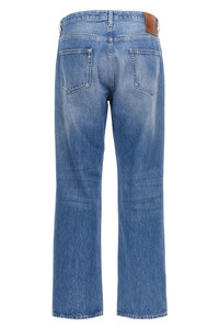 cod. V3DE04CAA6558 Five-pocket cotton denim jeans with high waist, straight leg, button closure, and leather 'Chez Valentino' logo label on the back. Color: Blue Size & Fit: true to size fit Composition: 100% cotton Made in: Italy