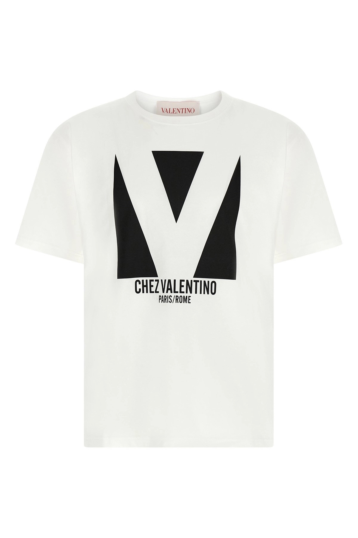 cod. V3MG16PAQ9A03 Cotton T-shirt with front 'Chez Valentino' print, crew neck, short sleeves. Color: White/Black Size & Fit: true to size fit Composition: 100% cotton Made in: Italy