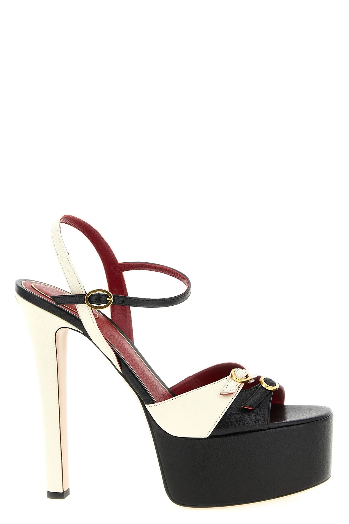 cod. W2S0NL1DDT790 'Crasher' two-tone kid leather sandals with adjustable straps, platform, heel with antiqued effect metal 'VLogo Signature' detail, leather sole. Color: White/Black Size & Fit: EU WOMAN - Heels: 14,5 cm / Platform: 5 cm Composition: 100% calfskin leather (Bos Taurus) Made in: Italy