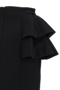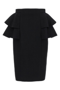 cod. B3RADJ51CF0NO Midi skirt in wool and silk blend crepe couture, ruffles on the sides, Habotai silk lining, zip closure and back split. Color: Black Size & Fit: true to size fit Composition: 65% virgin wool 35% silk Made in: Italy