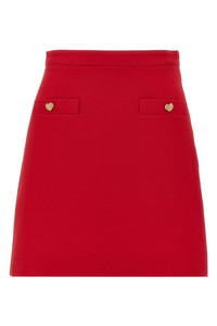 cod. B3RACM21CFR9M Crepe Couture mini skirt, front pockets with heart-shaped jewel buttons, Fiore VLogo jacquard lining, side zip closure. Color: Red Size & Fit: true to size fit Composition: 65% virgin wool 35% silk Made in: Italy