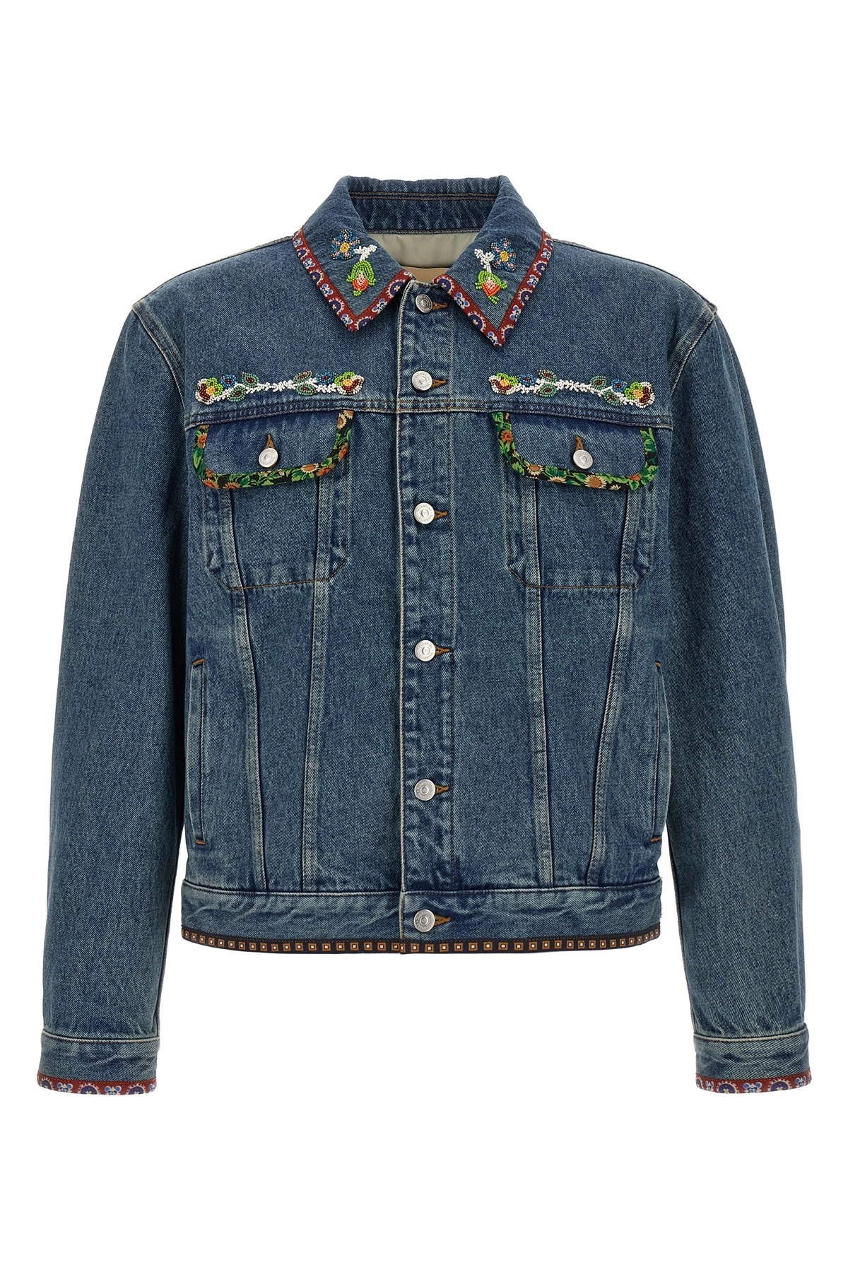DENIM JACKET WITH BEADED EMBROIDERY AND PRINTED EDGES