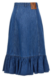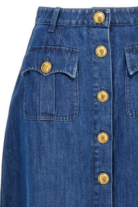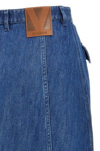 cod. B3DD18L94C558 Light cotton denim midi skirt, front VLogo button closure, pockets, flounce on the hem, back leather logo tag. Color: Blue Size & Fit: true to size fit Composition: 100% cotton Made in: Italy