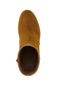 cod. W0S0NF1DHURDX 'Fawcette' suede ankle boots, side zip closure, platform, wide heel with antiqued effect metallic VLogo Signature, leather and rubber sole. Color: Beige Size & Fit: EU WOMAN - Heel: 9 cm Composition: 50% calf leather 50% plastic materials Made in: Italy