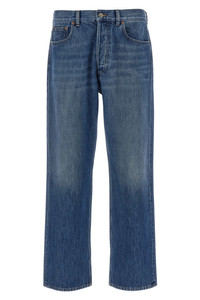cod. V3DE05EB6M558 Medium wash cotton denim jeans, contrast stitching, straight leg, front button closure, five pockets, back leather logo tag. Color: Blue Size & Fit: true to size fit Composition: 100% cotton Made in: Italy