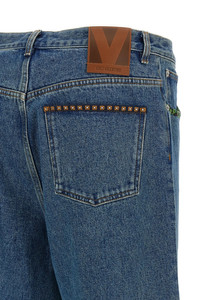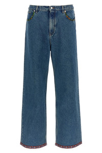 cod. V3DE04RB0W558 Cotton denim jeans with floral print cotton inserts, front zip and button closure, five pockets, straight leg, leather logo label at the back. Color: Blue Size & Fit: true to size fit Composition: 100% polyamide Made in: Italy