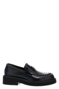 cod. 5Y0S0I69ADY0NO 'Gentleglam' calf leather loafers with mini stud and rivet appliques, rubber sole. Color: Black Size & Fit: EU MEN Composition: 100% calfskin leather (Bos Taurus) Made in: Italy