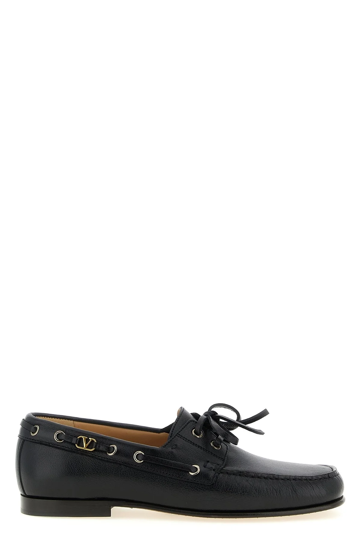 cod. Y2S0M05MIL0NO 'Palm Avenue' calf leather boat shoe, VLogo Signature metal on the side, lace-up closure, square toe, leather sole. Color: Black Size & Fit: EU MEN Composition: 100% buffalo leather Made in: Italy