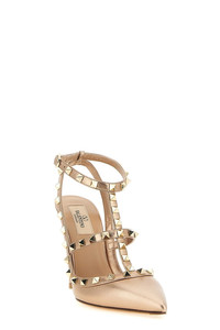 cod. W2S0393QKHGF9 'Rockstud' pumps in laminated nappa leather with stud applications, adjustable ankle straps, pointed model, stiletto heel, leather sole. Color: Pink Size & Fit: EU WOMAN - Heel: 10 cm Composition: 100% calfskin leather (Bos Taurus) Made in: Italy