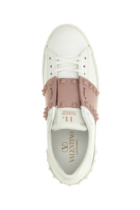 cod. W2S0A01LTU834 'Rockstud Untitled' leather sneakers with colored band and contrast metal studs, special label with number 11, lace-up closure, rubber sole with rubber stud detail on the back. Color: Pink Size & Fit: EU WOMEN Composition: 100% calfskin leather (Bos Taurus) Made in: Italy