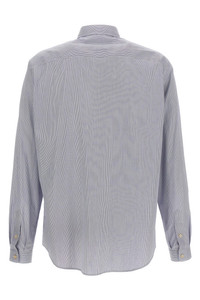 cod. V3ABS77B2Q129 Striped cotton shirt, collar, front button closure, patch pocket with logo embroidery, long cuffed sleeves. Color: Light Blue Size & Fit: True to size fit Collar size Composition: 100% cotton Made in: Italy