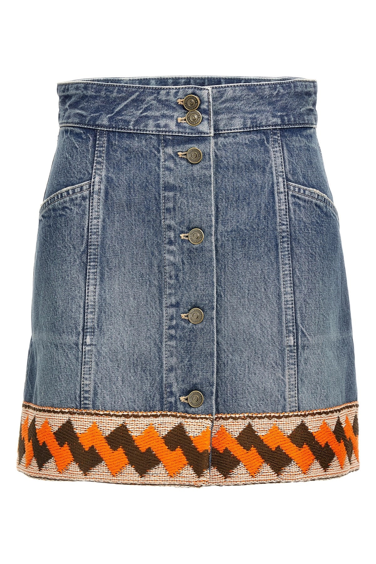 cod. B3DD19Z94U558 Cotton denim mini skirt with trimming detail on the hem, front button closure, pockets. Color: Multicolor Size & Fit: true to size fit Composition: 64% cotton, 36% linen Made in: Italy