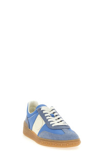 cod. Y2S0H77MBMBQG 'Upvillage' crust and nylon sneakers, contrast side band in napped calfskin with embossed 'Vlogo Signature', lace-up closure, rubber sole with studs. Color: Light Blue Size & Fit: EU MEN Made in: Italy