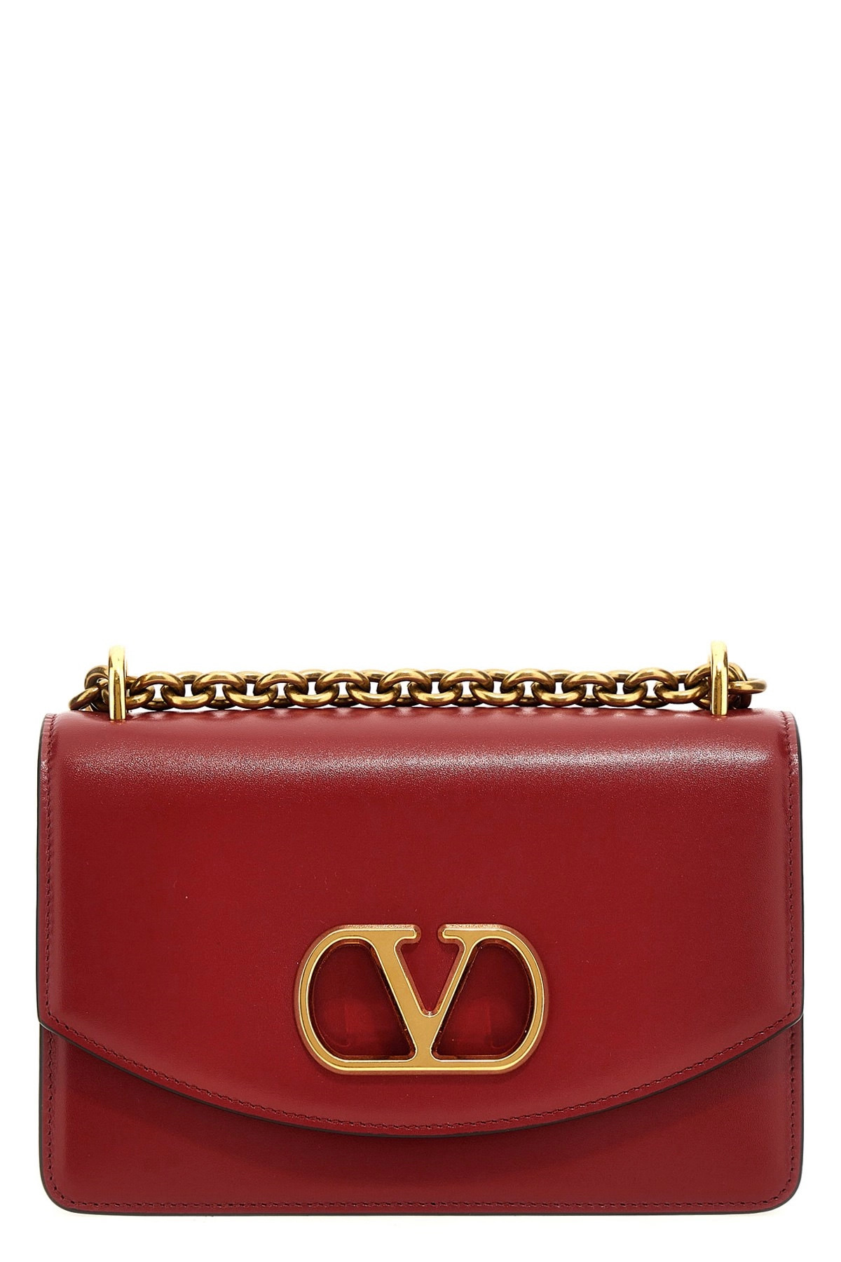 cod. W2B0R17GCB0RO 'Vain' leather shoulder bag, magnetic flap closure with front metal 'VLogo Signature' cut out, sliding chain. Color: Red Size & Fit: W 19.5 x H 12 x D 7 cm Composition: 100% calfskin leather (Bos Taurus) Made in: Italy