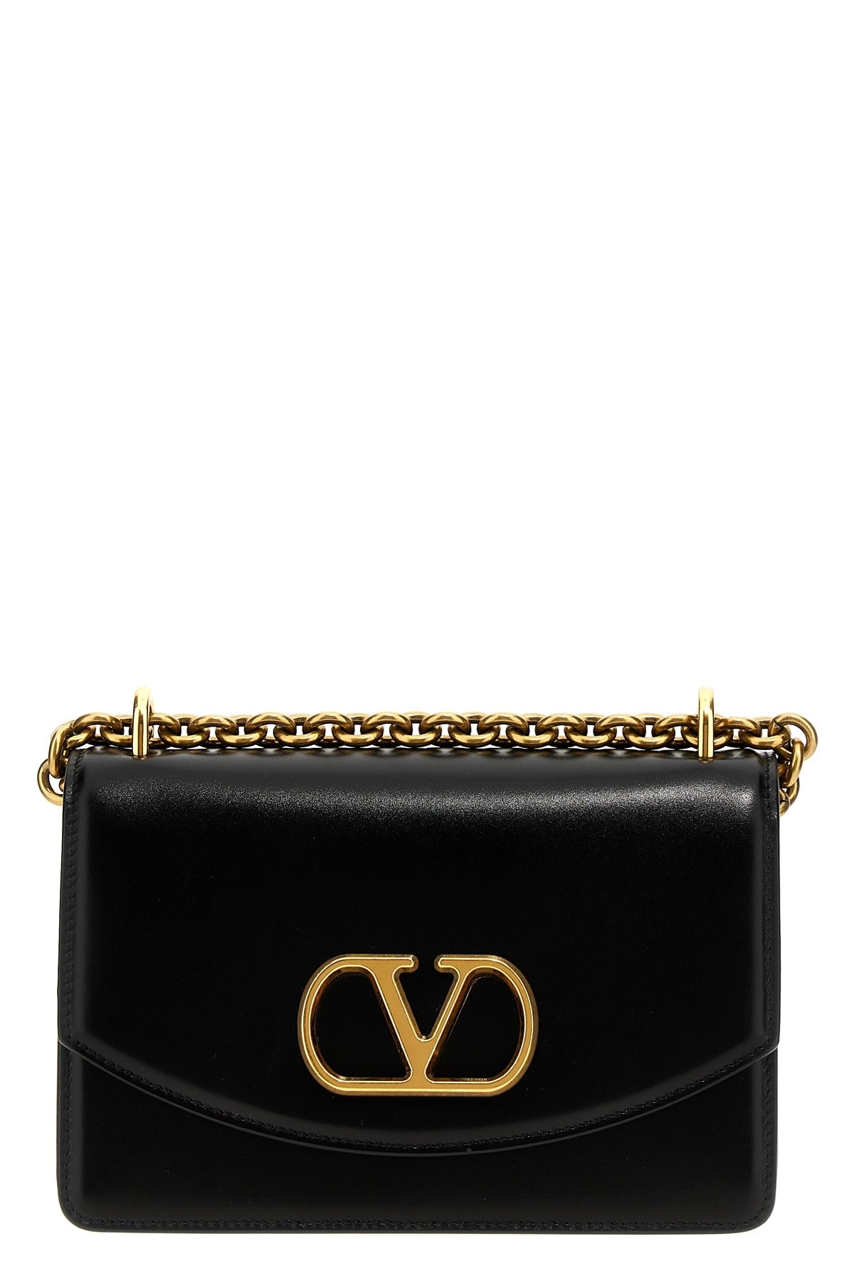 cod. W2B0R17GCB0NO 'Vain' leather shoulder bag, magnetic flap closure with front metal 'VLogo Signature' cut out, sliding chain. Color: Black Size & Fit: W 19.5 x H 12 x D 7 cm Composition: 100% calfskin leather (Bos Taurus) Made in: Italy